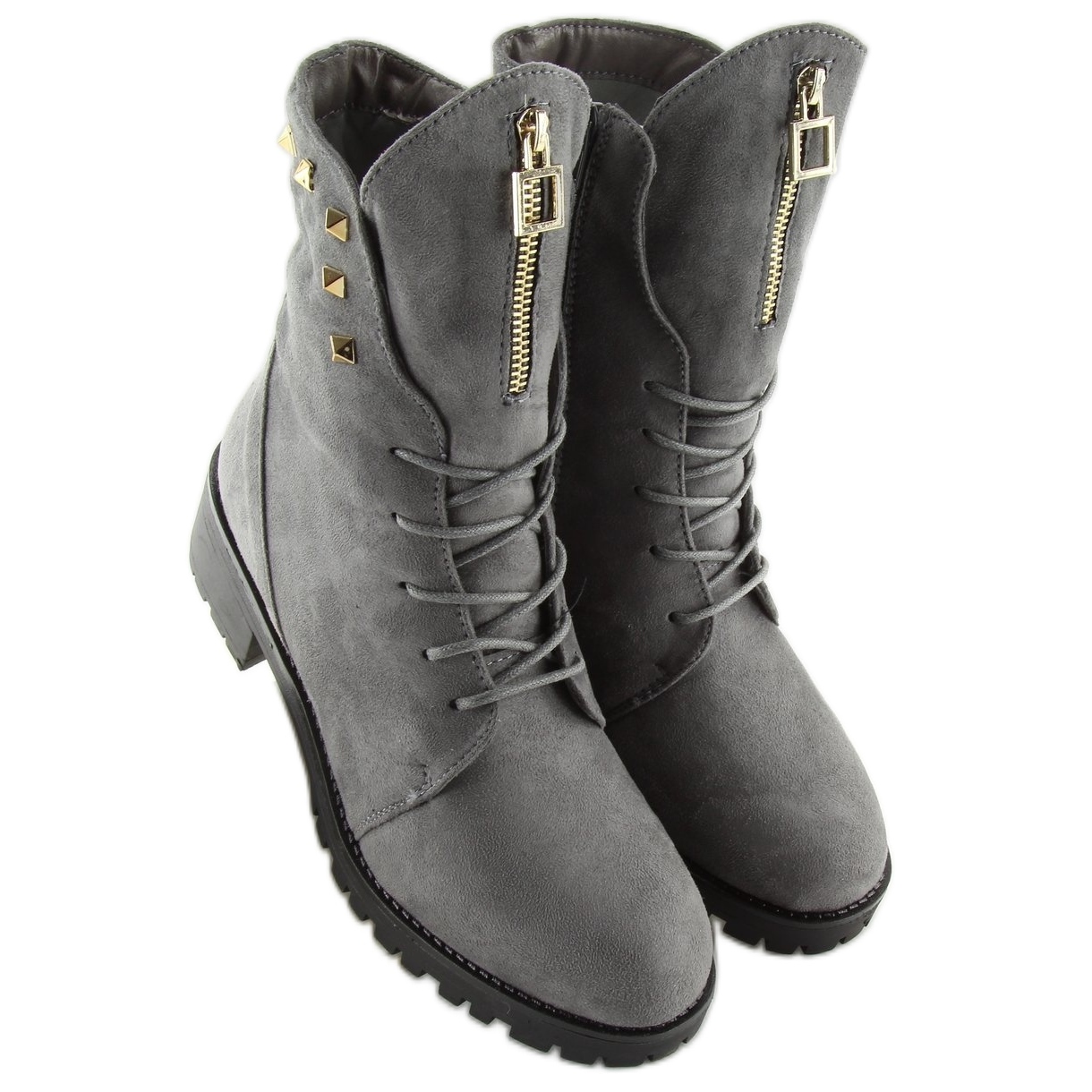Stivali da donna eleganti in un clima roccioso - lavoratori classici con decorazioni sottili. I borchie decorative e un'efficace cerniera sulla lingua danno loro il carattere, grazie a cui completeranno perfettamente meno stilizzazioni formali, dando loro un artiglio. L'intero pizzo, inoltre dotato di una serratura laterale, che rende più facile da indossare. Realizzato in pelle scamosciata ecologica in elegante nero.