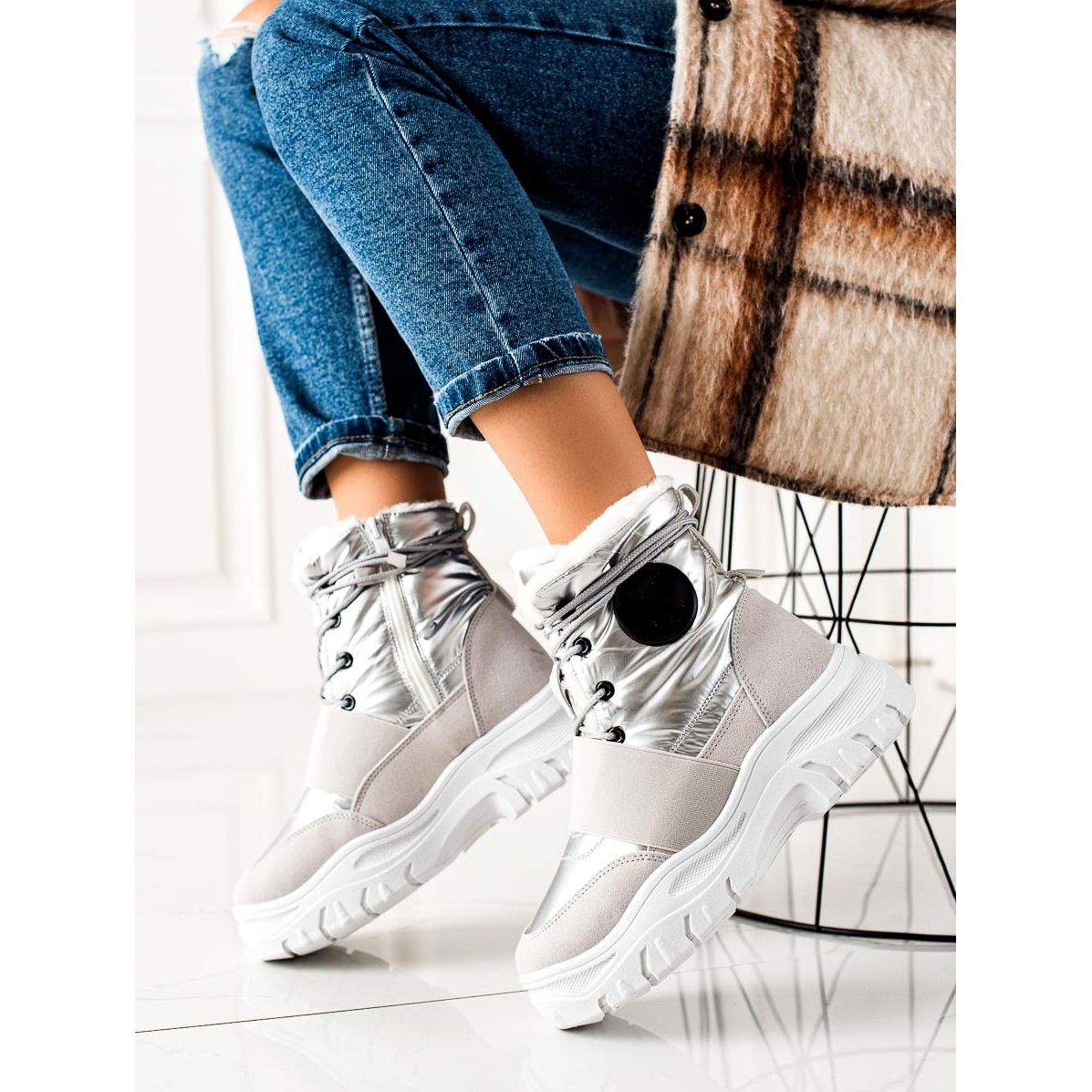 Scopri un comfort straordinario e un look alla moda con gli stivali da neve casual TRENDI nei toni dell'argento e del grigio. Queste scarpe eleganti sono la scelta perfetta per la stagione autunno/inverno, offrendo calore e comfort nelle giornate fredde. Grazie all'isolamento e al tallone morbido integrato, i tuoi piedi si sentiranno a proprio agio, indipendentemente dalle condizioni atmosferiche.