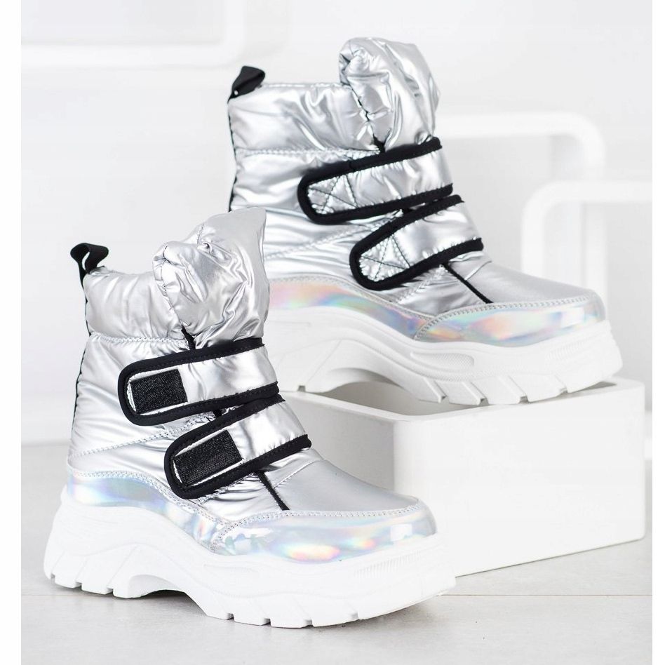 Dettagli: SHELOVET Stivali da neve lucidi con velcro argento