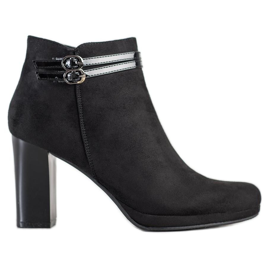 Scopri l'eleganza e il comfort con gli stivaletti neri M.Daszyński, che diventeranno il complemento perfetto della tua collezione di calzature. Questi bellissimi stivali con il tacco alto, che arrivano leggermente sopra la caviglia, attireranno sicuramente l'attenzione ad ogni festa. Realizzate in pelle scamosciata di alta qualità, hanno una finitura elegante che conferisce loro uno stile unico.