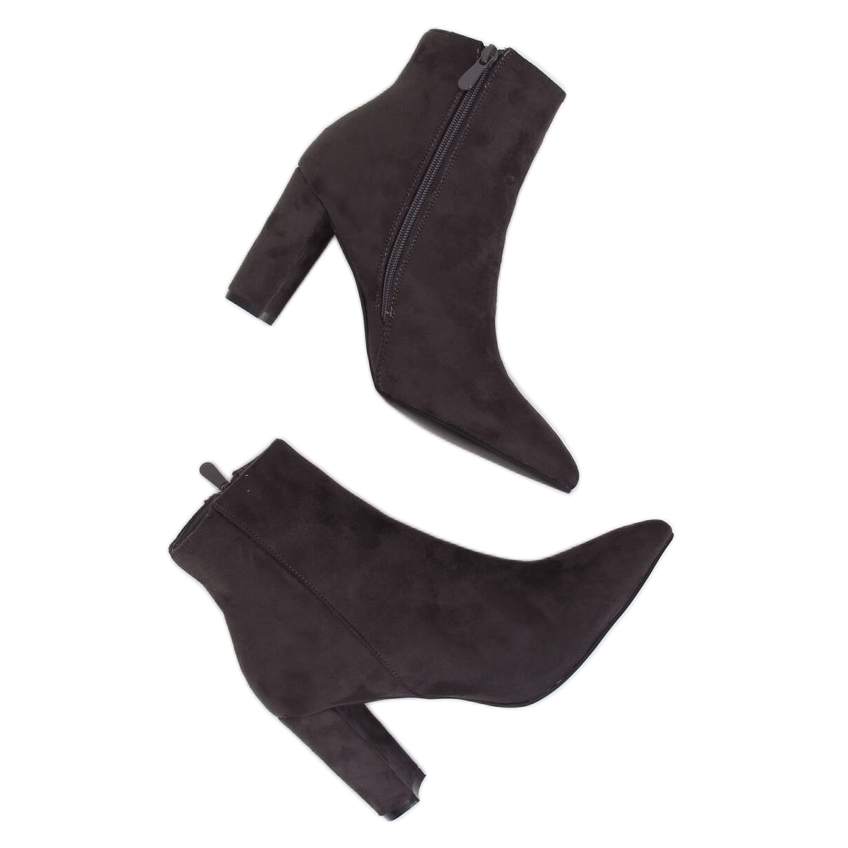 Stivaletti grigi con tacco alto NS039P Il grigio è una scelta elegante per le donne che apprezzano le calzature classiche ed eleganti. La loro punta delicata conferisce loro un carattere sottile ed elegante, e allo stesso tempo allunga magnificamente le gambe grazie al tacco alto 9 cm. Realizzati in pelle scamosciata ecologica di alta qualità, questi stivaletti non sono solo estetici, ma anche rispettosi dell'ambiente.