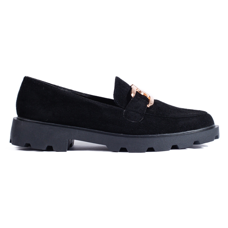 Le scarpe nere in pelle scamosciata Shelovet con catena sono la scelta ideale per le donne che apprezzano il comfort e l'eleganza nell'uso quotidiano. Questi eleganti mocassini presentano un design classico con punta rotonda, che li rende un complemento perfetto sia per stili casual che più eleganti.