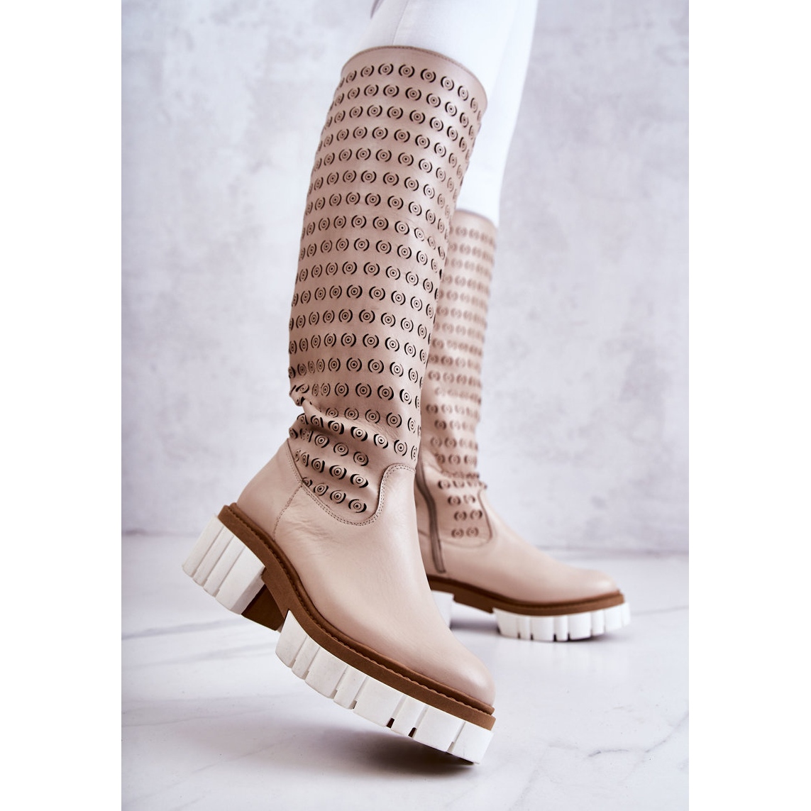 Dettagli: Stivali in pelle traforati con cerniera Lativia beige
