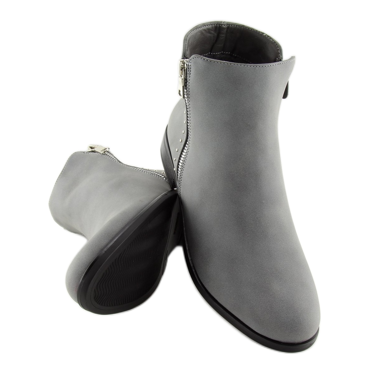 Gli stivaletti Chelsea da donna in colore grigio 0-257 Grigio sono la scelta perfetta per le donne che apprezzano l'eleganza e il comfort ogni giorno. Questo modello combina un taglio classico con accessori moderni e accattivanti. Una cerniera decorativa argentata e borchie dettagliate sulla tomaia conferiscono alle scarpe un carattere unico, in linea con le ultime tendenze.