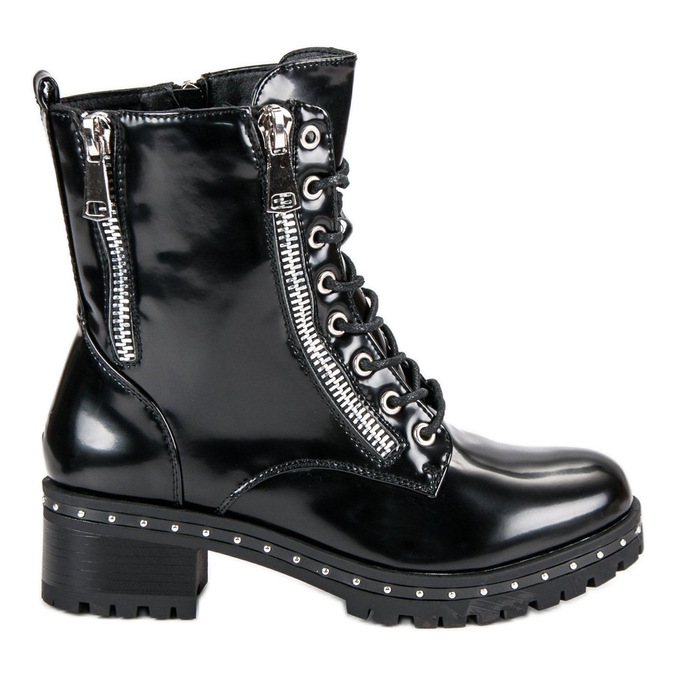 Scopri gli esclusivi stivali da lavoro laccati in un elegante colore nero, che sono la scelta perfetta per le giornate più fredde. Queste scarpe eleganti sono realizzate in pelle ecologica di alta qualità, che le rende sia alla moda che rispettose dell'ambiente. Il loro effetto lucido e laccato conferisce loro un carattere unico e allo stesso tempo si adatta perfettamente a molti stili.