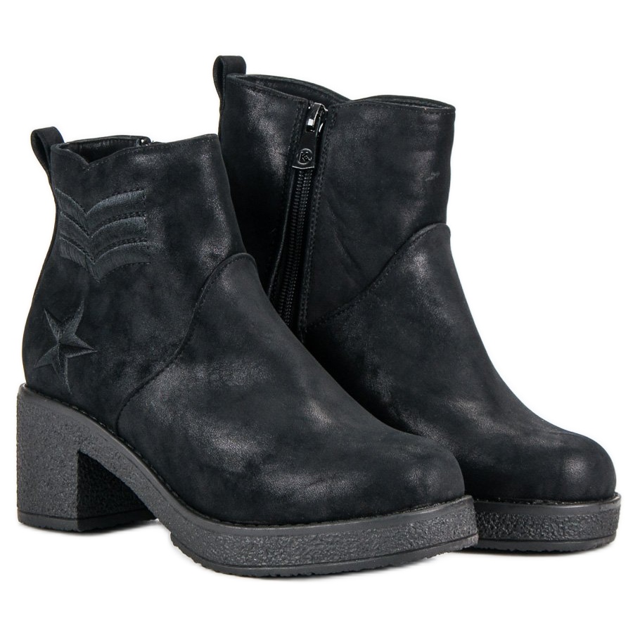 Un accento distintivo sotto forma di stella militare ricamata conferisce loro un carattere unico che attira l'attenzione. Il tacco largo di 6 cm, insieme ad un plateau stabile, fornisce un supporto adeguato, il che significa che puoi indossare questi stivali tutto il giorno senza rinunciare all'eleganza.