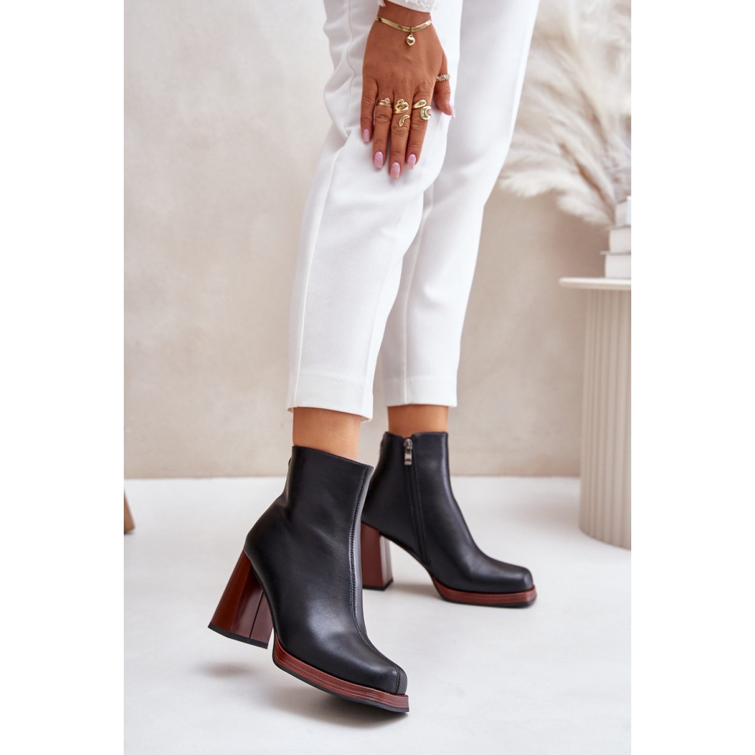 Una tomaia alta 11,5 cm che evidenzia l'eleganza delle calzature e i nasi arrotondati danno loro il fascino. Gli stivali sono fissati con una cerniera, il che rende più facile da mettere e togliere e un dettaglio aggiuntivo e decorativo sul retro dà loro un carattere unico.