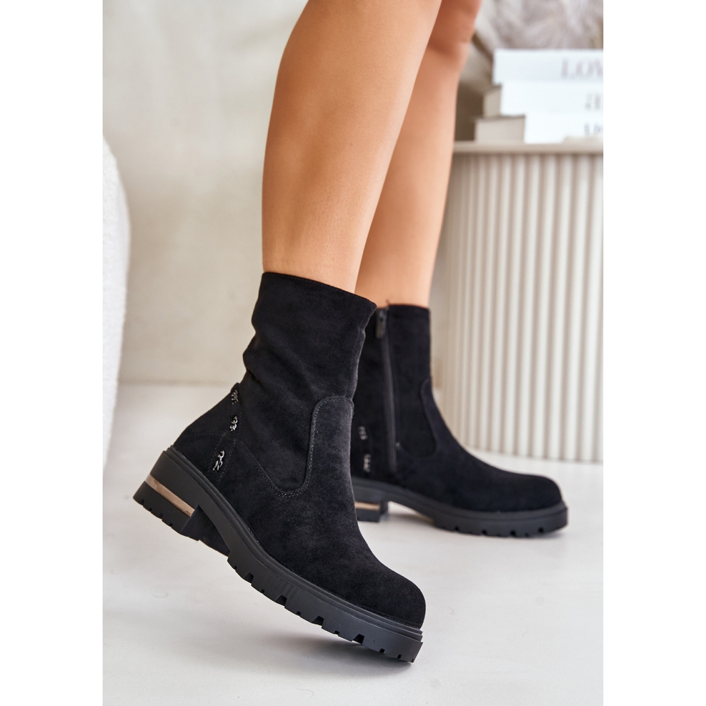Gli stivali a ruote piatti alti 5 cm, con dita arrotondati, offrono un massimo comfort durante il giorno. L'accento caratteristico sotto forma di una catena decorativa sulla tomaia dà loro un personaggio moderno ed elegante. Grazie al caldo isolamento generale, i piedi rimangono caldi anche nei giorni più freddi, il che li rende un'ottima scelta per la stagione autunnale e invernale.