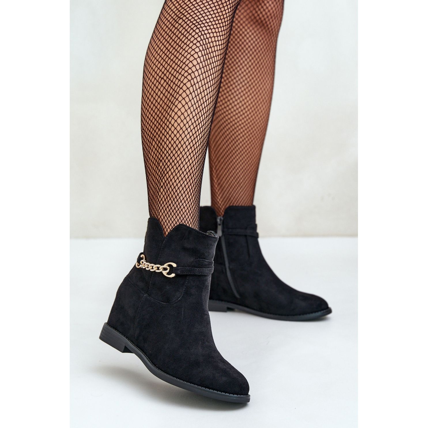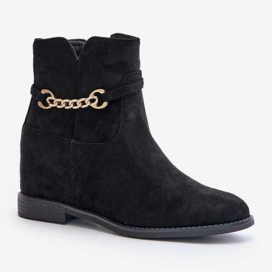 Medagliato in un tallone piatto con un cuneo nascosto con un'altezza di 7,5 cm, ma non solo forniscono comfort di indossare, ma anche otticamente allunga le gambe. I nasi arrotondati danno loro sottigliezze e un ulteriore vantaggio è un cinturino efficace decorato con una catena dorata, che dà un carattere unico.