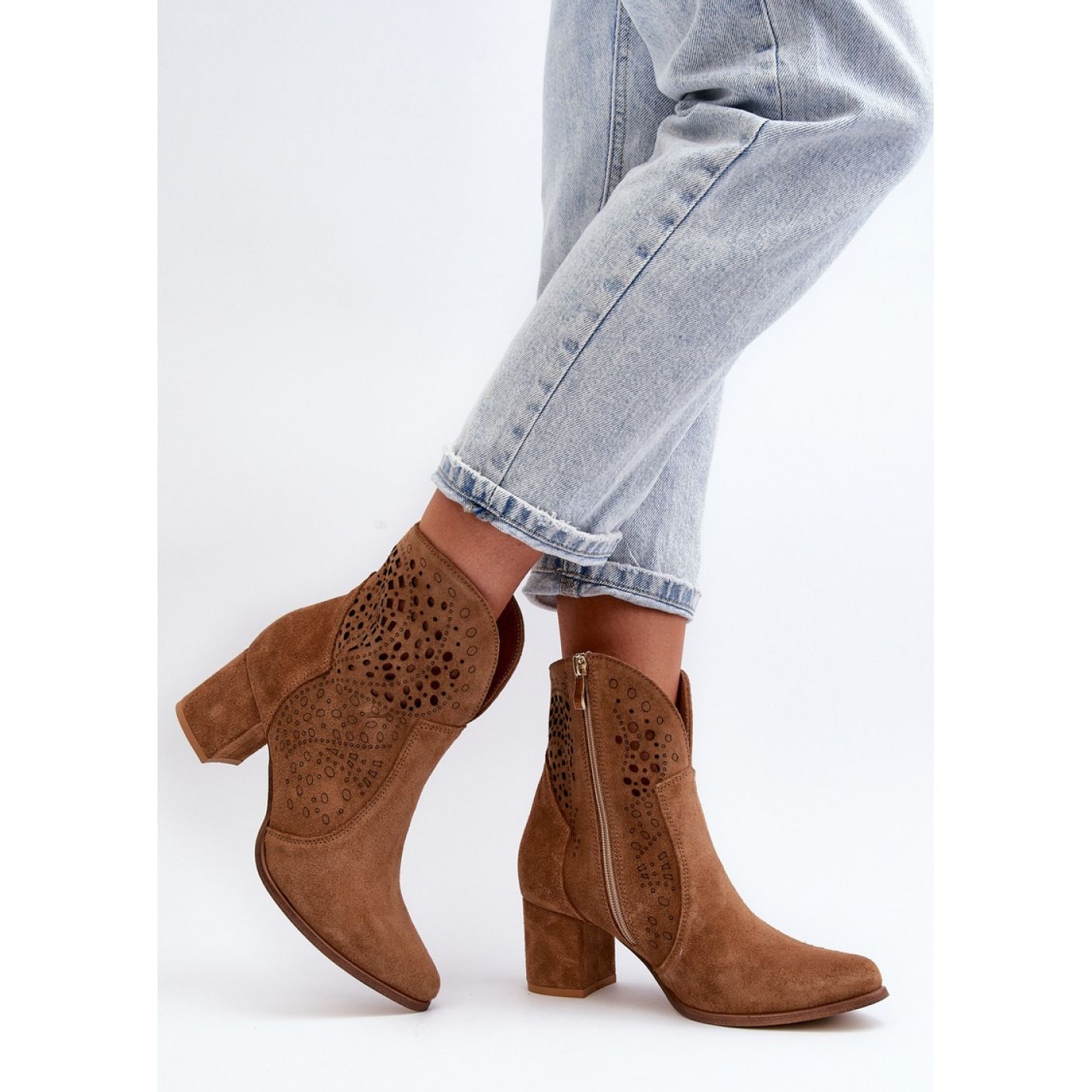 BOTKI Model Zazoo 3166/P Camel From the Step In Style Brand è un'ottima scelta per ogni amante dell'eleganza e del comfort. Realizzati in pelle scamosciata naturale di alta qualità, questi stivali marroni si dilettano con il loro modello di lavoro aperto e un tallone alto 6 cm, il che li rende un complemento ideale per molti stili, sia casuali che più formali.