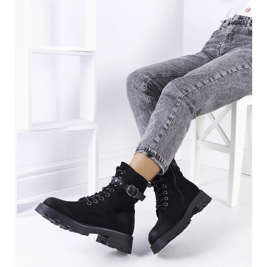 Eleganti stivali alla caviglia universali, realizzati in pelle ecologica in pelle scamosciata. Il modello Narnclaedra combina un carattere alla moda e grezzo di trapper con soluzioni pratiche: una suola spessa con un protettore garantisce l'adesione e il riscaldamento delle cure per il comfort termico nella stagione autunno/inverno. La chiusura della cerniera all'interno rende più facile inserire rapidamente e l'allacciatura nella parte anteriore ti consente di abbinare la tomaia. La cinghia sottile con un morsetto decorativo di colore argento aggiunge carattere.