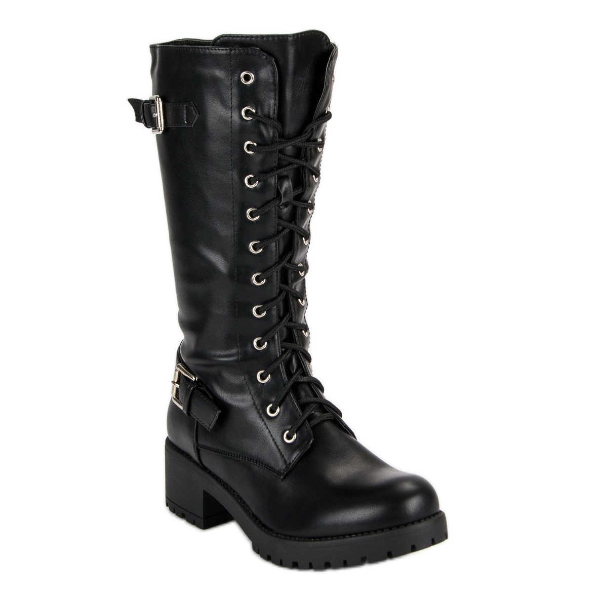 Gli stivali neri hanno una pratica chiusura con cerniera e lacci, che permette una perfetta aderenza a qualsiasi polpaccio. Ulteriori cinturini decorativi con fibbie argentate conferiscono loro un look distintivo e audace, perfetto per le donne che desiderano aggiungere un tocco di stile al proprio stile.