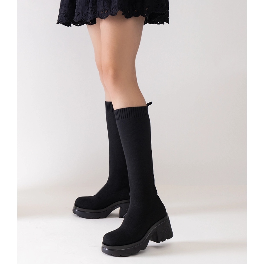 Stivali neri con una tomaia elastica Nimroda è la scelta perfetta per le donne che apprezzano sia lo stile che il comfort. Il loro design classico con un naso rotondo e un tacco piatto con la piattaforma li rendono perfetti per ogni giorno, ma completano anche perfettamente l'elegante stilizzazione per le uscite serali.