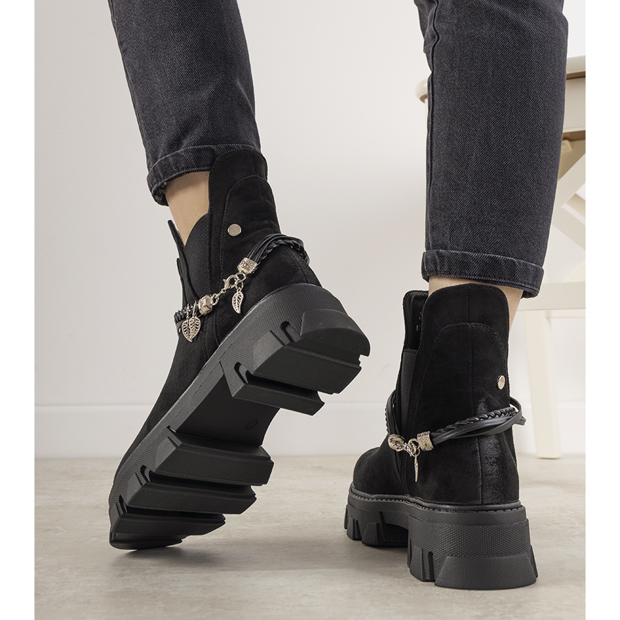 Gli stivali neri con braccialetto Fearless sono la scelta perfetta per la prossima stagione autunno-inverno. Queste scarpe eleganti, realizzate in pelle scamosciata ecologica di alta qualità, uniscono eleganza e carattere unico. Il loro effetto consumato sulla punta aggiunge originalità, e la suola alta e fantasia le rende accattivanti.