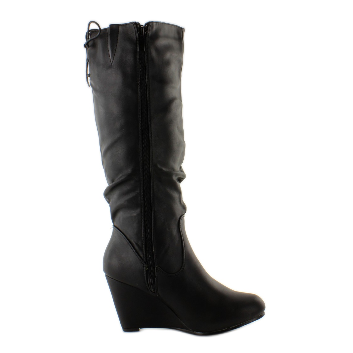 Scopri l'eleganza e il comfort in ogni condizione grazie ai classici stivali con zeppa TE003 in nero. Queste scarpe da donna, realizzate in pelle ecologica di alta qualità, uniscono stile e funzionalità. La tomaia delicatamente stropicciata conferisce loro un carattere unico e le punte arrotondate garantiscono il comfort di indossamento.