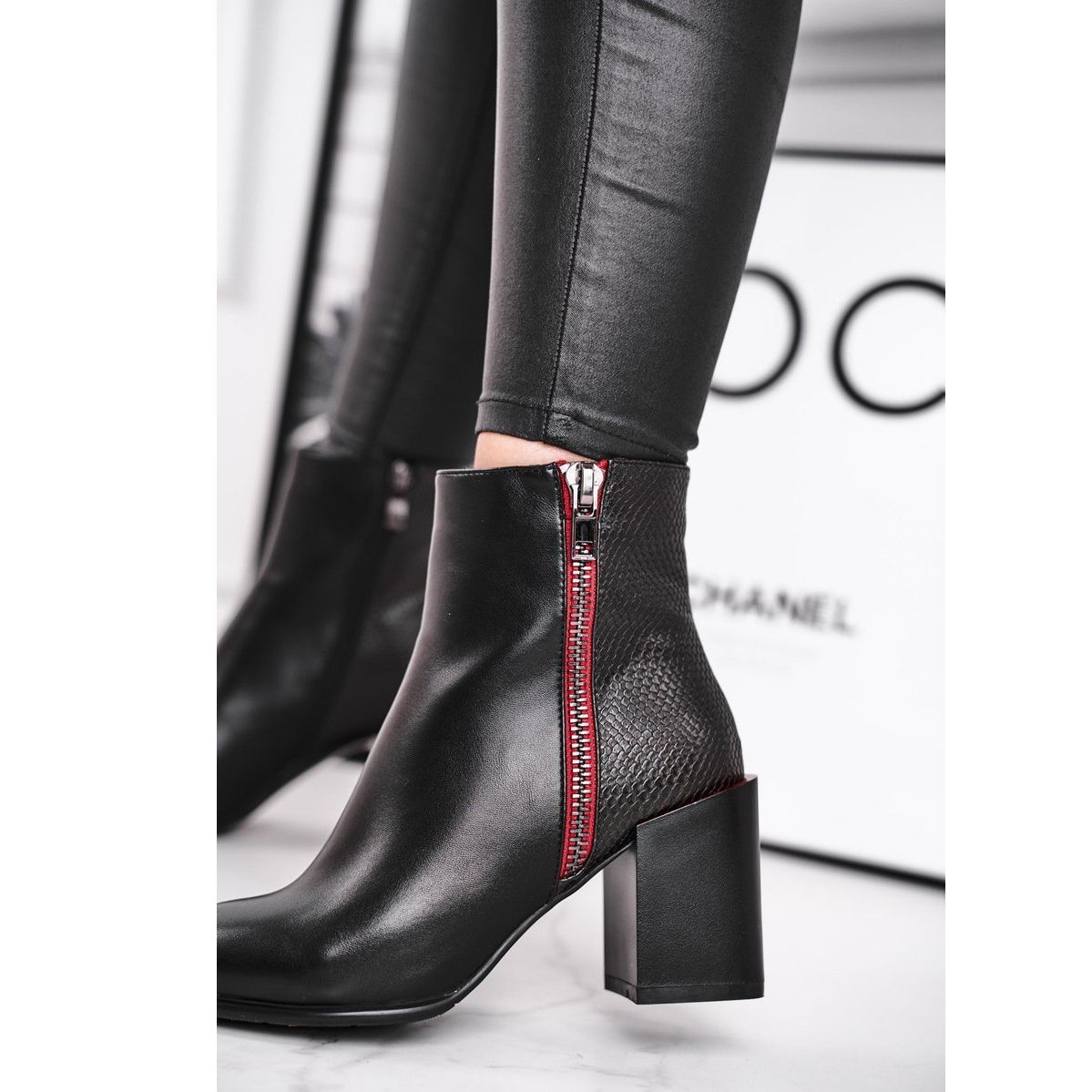 Scopri la comodità e l'eleganza con gli stivaletti da donna S.Barski. Il modello decorato con un palo nero con accenti rossi è un perfetto connubio tra classico e moderno, accattivante. Montati su un palo di media altezza, 7,5 cm, offrono stabilità e comfort per tutto il giorno.