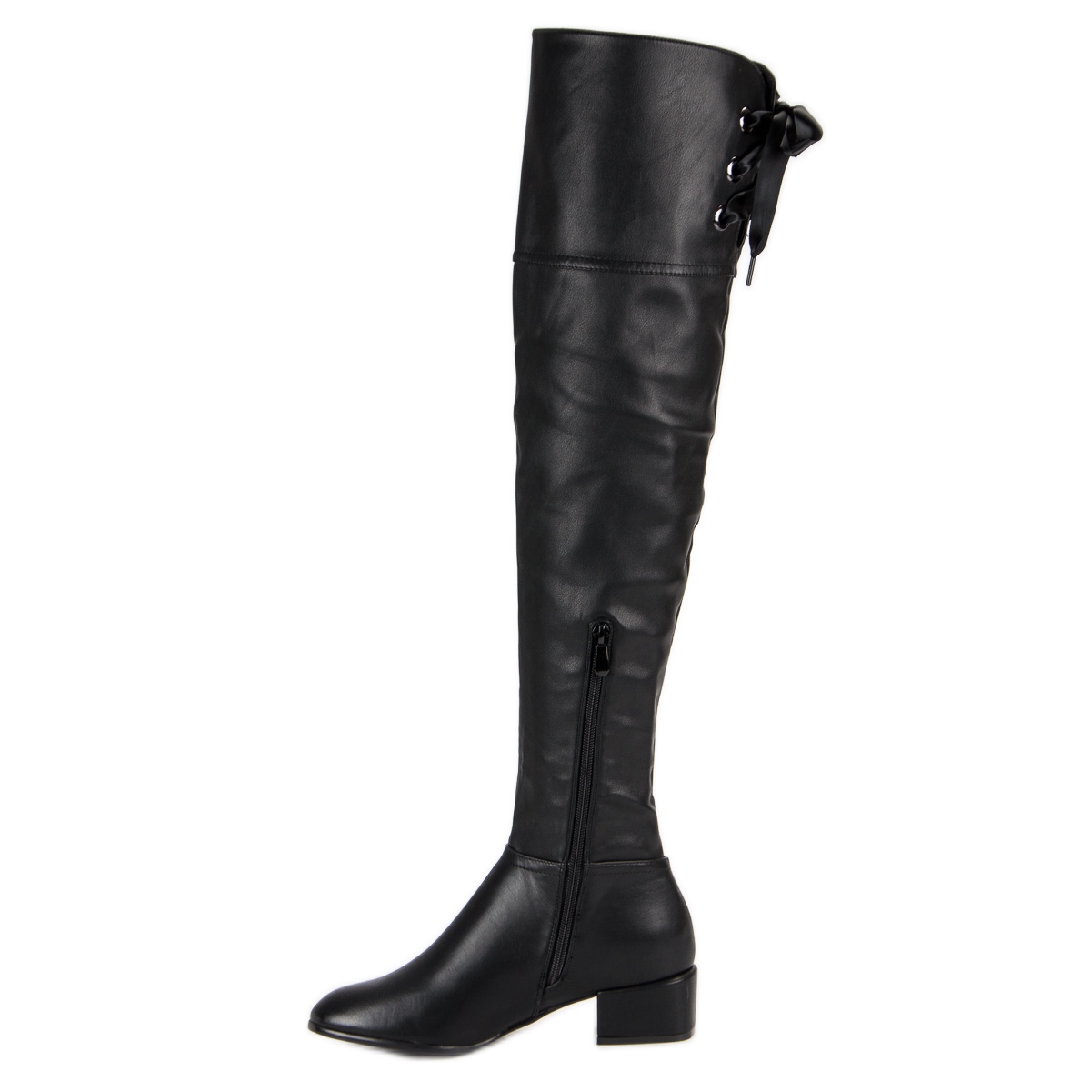 Il taglio classico, che arriva sopra il ginocchio, sottolinea le gambe, aggiungendo eleganza alla silhouette e allungandola otticamente. La punta tonda e la suola sintetica assicurano comfort e stabilità ad ogni passo. Senza motivo o decorazioni aggiuntive, questi stivali sono una soluzione universale che si adatterà perfettamente a qualsiasi stile.