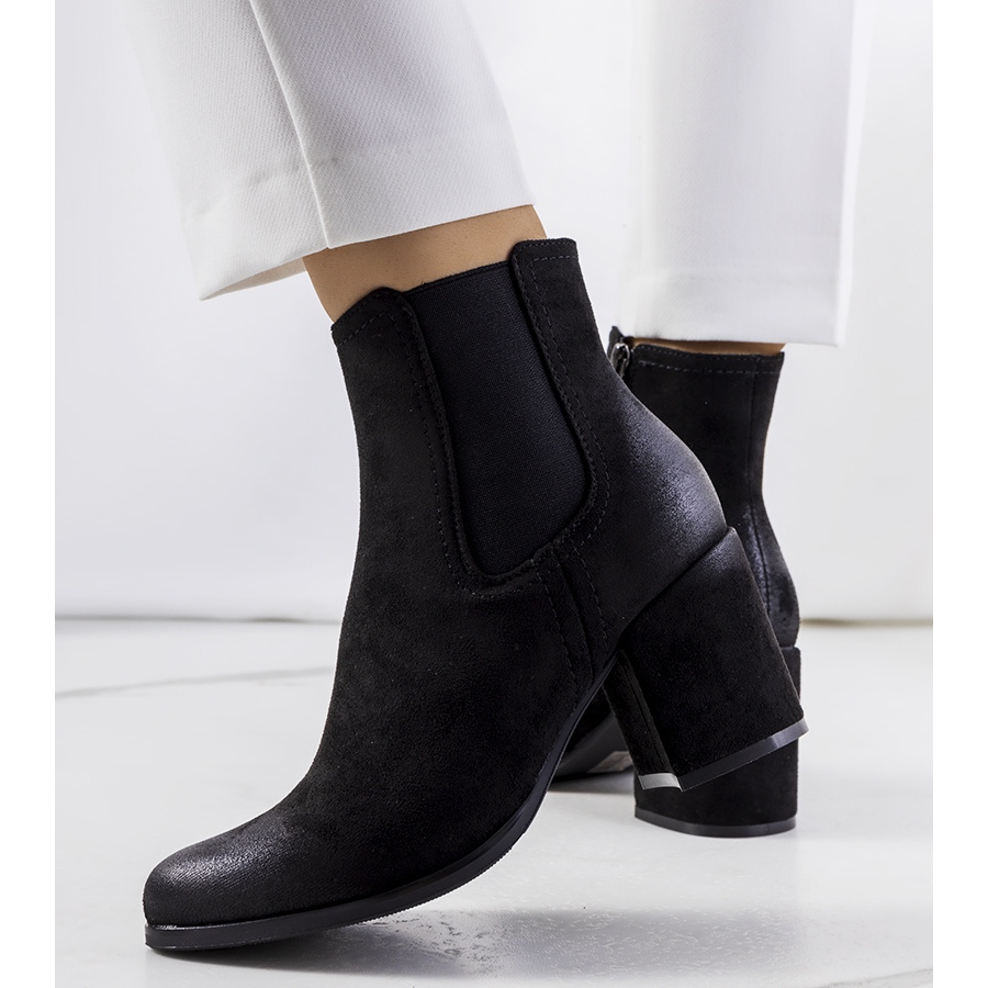 Stivali classici e femminili realizzati in pelle ecologica con consistenza in pelle scamosciata. Fissato con una cerniera dall'interno, incorporata su un palo stabile e medio (altezza del tallone: 7 cm). Inside leggermente isolato, perfetto per i giorni più freddi. Numerazione standard - Scegli le dimensioni ordinarie.