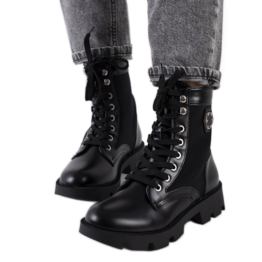 Black Keld Trapper - stivali solidi, eleganti e confortevoli ideali per la stagione autunno/inverno. Il modello è realizzato in Eco -Pleather con l'aggiunta di materiale impermeabile, montato su una suola spessa e di gomma con un battistrada. Grazie al leggero riscaldamento all'interno e all'inserto isolato, forniranno comfort anche nei giorni più freddi.