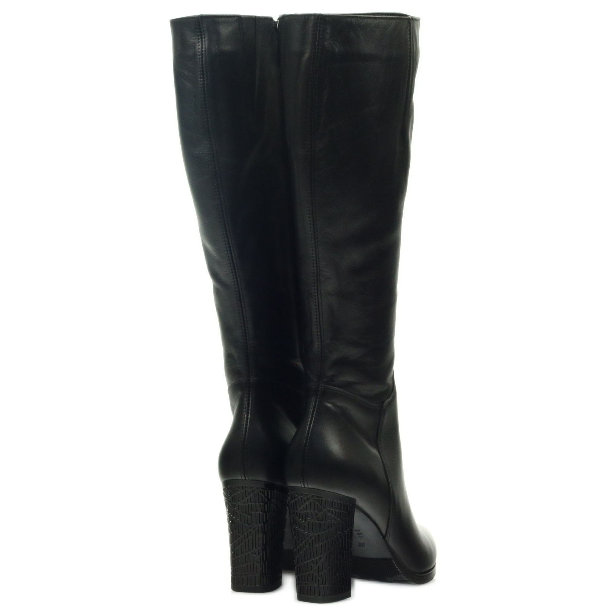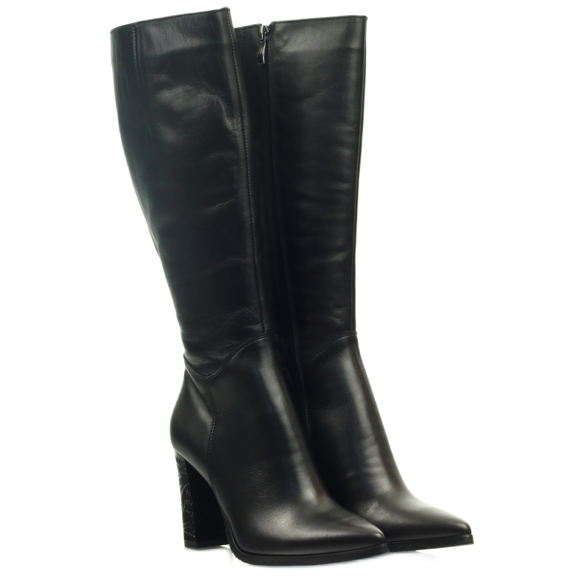Gli stivali neri Espinto hanno un taglio classico, che arriva fino al ginocchio, che li rende un'aggiunta universale a vari stili, dal casual al più elegante. Il tacco decorato alto 8,5 cm non è solo estetico, ma soprattutto stabile e comodo da usare, che ti permette di indossarlo a lungo senza stancarti.