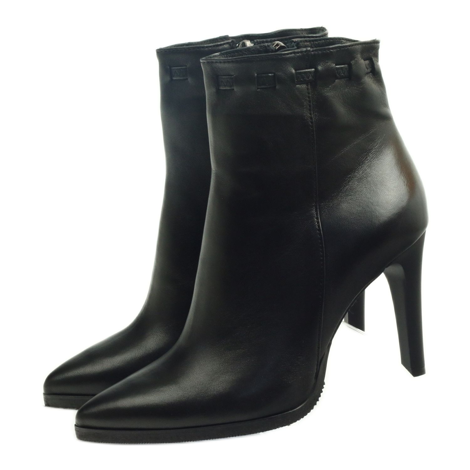 Scopri gli esclusivi stivali con stiletto neri Espinto 256, che sono la perfetta combinazione di eleganza e comodità. Realizzate interamente in pelle a grana naturale, queste scarpe alla moda colpiscono non solo per il loro aspetto, ma anche per la loro lavorazione accurata. Il loro interno è rivestito in pelle naturale e una comoda soletta in morbido pile per scarpe ti fa sentire a tuo agio anche dopo una lunga giornata di lavoro.