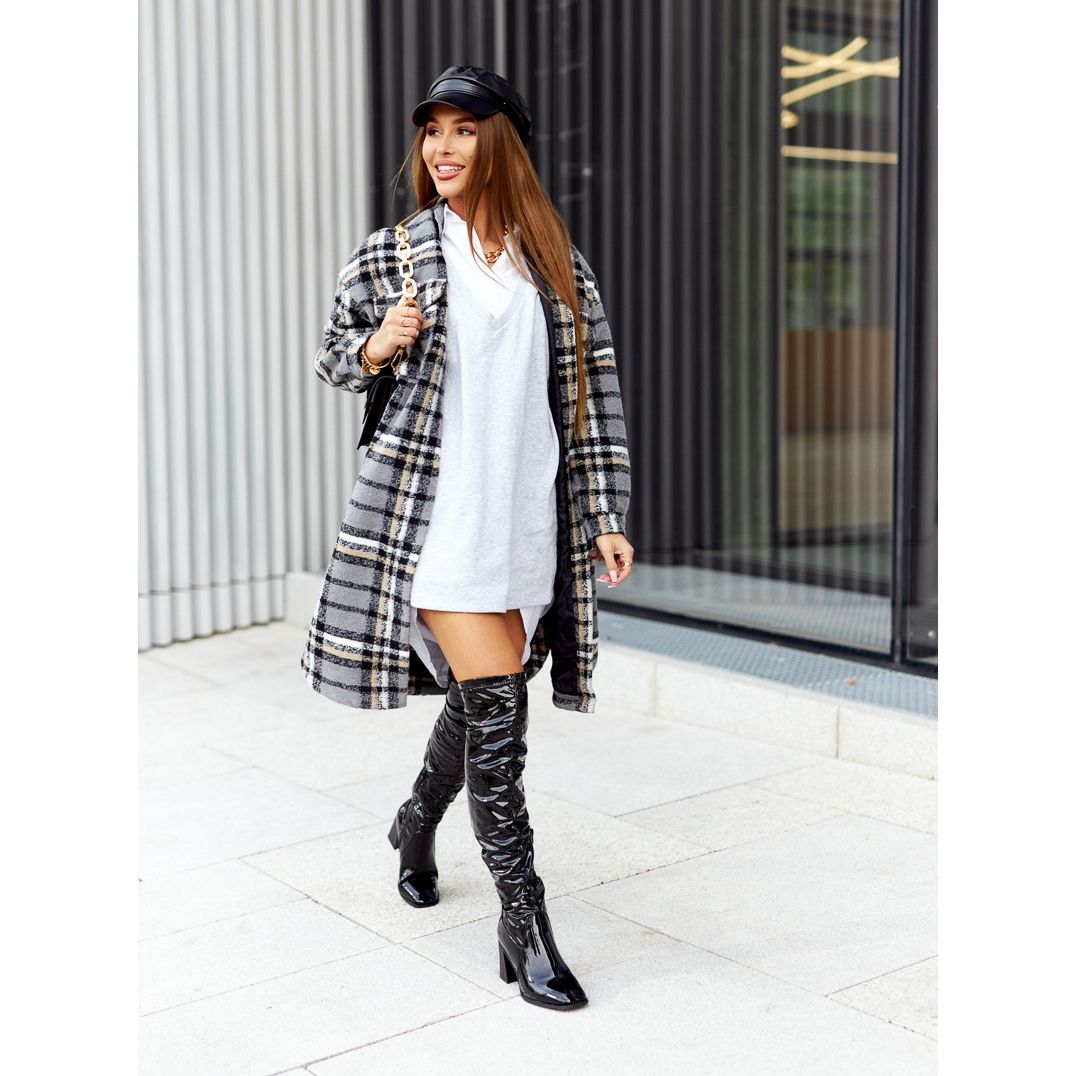 La loro tomaia alta, che arriva a 57 cm, è arricchita da una comoda cerniera sul fondo, che ne facilita la calzata. La punta tonda e il tacco largo alto 8 cm garantiscono stabilità e comodità da indossare tutto il giorno. Questi stivali sono dotati di una coperta per scarpe e la soletta isolante garantisce calore anche nelle giornate fredde.