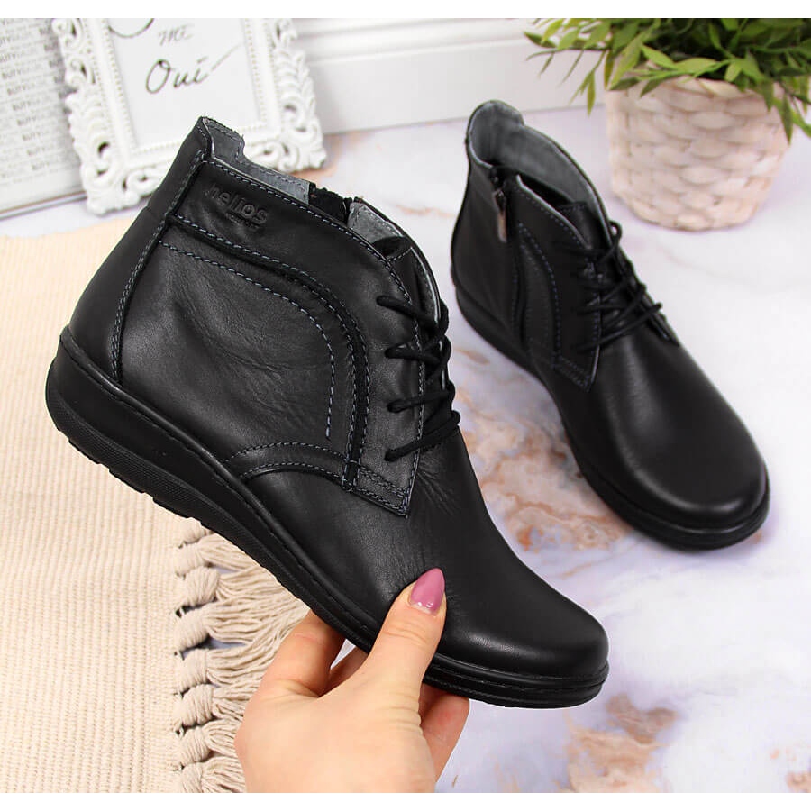 Scopri comfort e stile senza rivali scegliendo gli stivaletti in pelle isolante nera Helios 612-2. Questo modello unico combina la qualità della produzione polacca e un design alla moda che piacerà sicuramente ad ogni donna. Grazie all'allacciatura e ad una pratica cerniera, indossare e togliere le scarpe diventa estremamente facile e comodo.