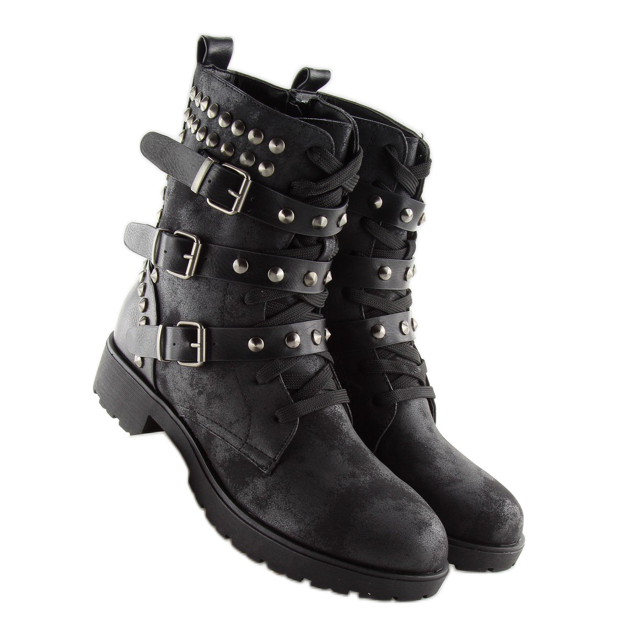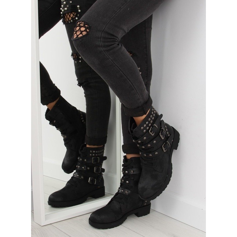 Presentiamo stivali neri FC-H123 neri - perfetti per le donne che apprezzano non solo lo stile, ma anche il comfort e la funzionalità. Questi operai in stile militare estremamente alla moda sono decorati con fibbie e numerose borchie, e le originali abrasioni conferiscono loro un carattere unico. Grazie a loro ti distinguerai sicuramente dalla massa!