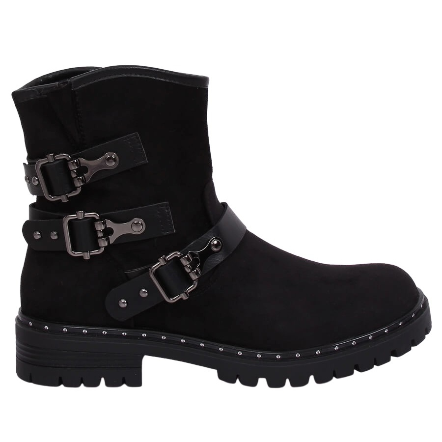 Scopri lo stile unico e la comodità offerta dagli stivali bassi neri da donna BH5502 Black! Questi stivali militari sono la perfetta combinazione di stile rock e funzionalità. Dotate di solida suola con protettore, garantiscono un ottimo grip su diverse superfici, e il look fashion è enfatizzato da strass e fibbie che corrono lungo la suola.