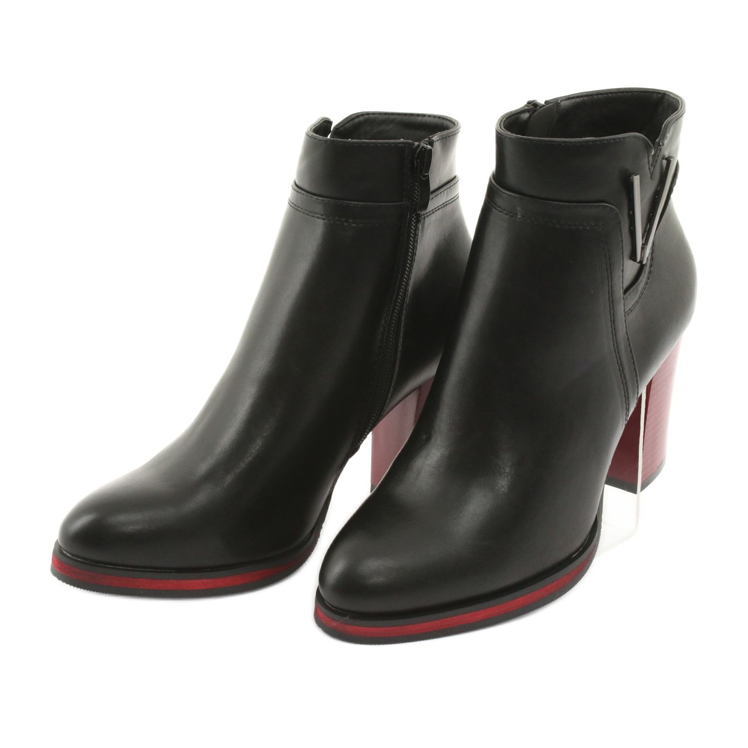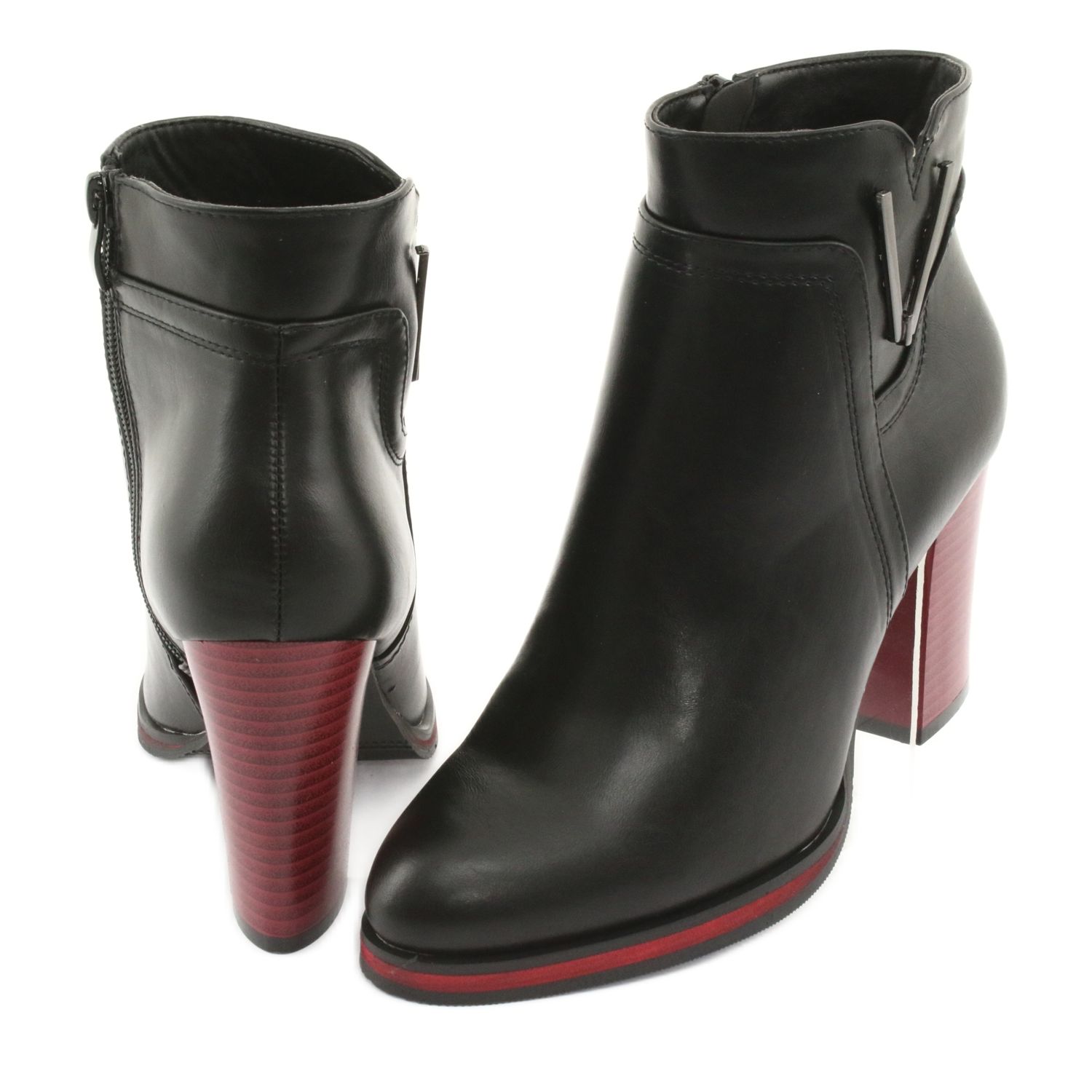 Il loro design unico si distingue per un tacco rosso e nero alto 8,5 cm e una sottile decorazione laterale che aggiunge loro carattere. La comoda punta smussata rende gli stivali non solo eleganti, ma anche comodi da indossare. Foderati con piacevole pelliccia, garantiscono un adeguato isolamento anche nelle giornate più fredde.