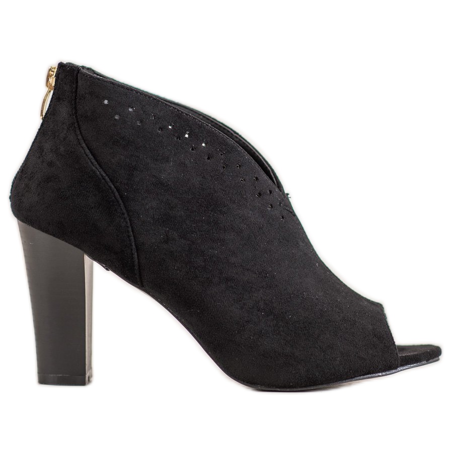 Gli stivaletti VINCEZA Open Toe in nero sono la scelta perfetta per le donne che vogliono unire l'eleganza ad uno stile moderno. Realizzati in pelle scamosciata ecologica di alta qualità, questi stivaletti offrono non solo un aspetto attraente, ma anche comfort da indossare. L'originale design open toe conferisce ad ogni styling un carattere unico.