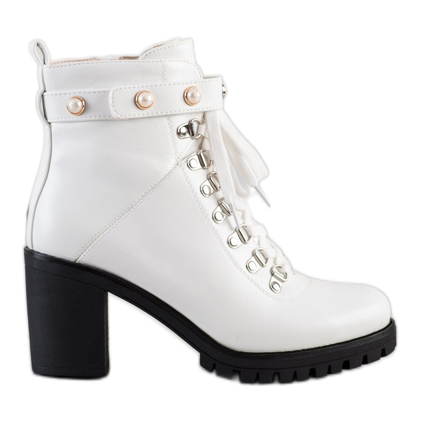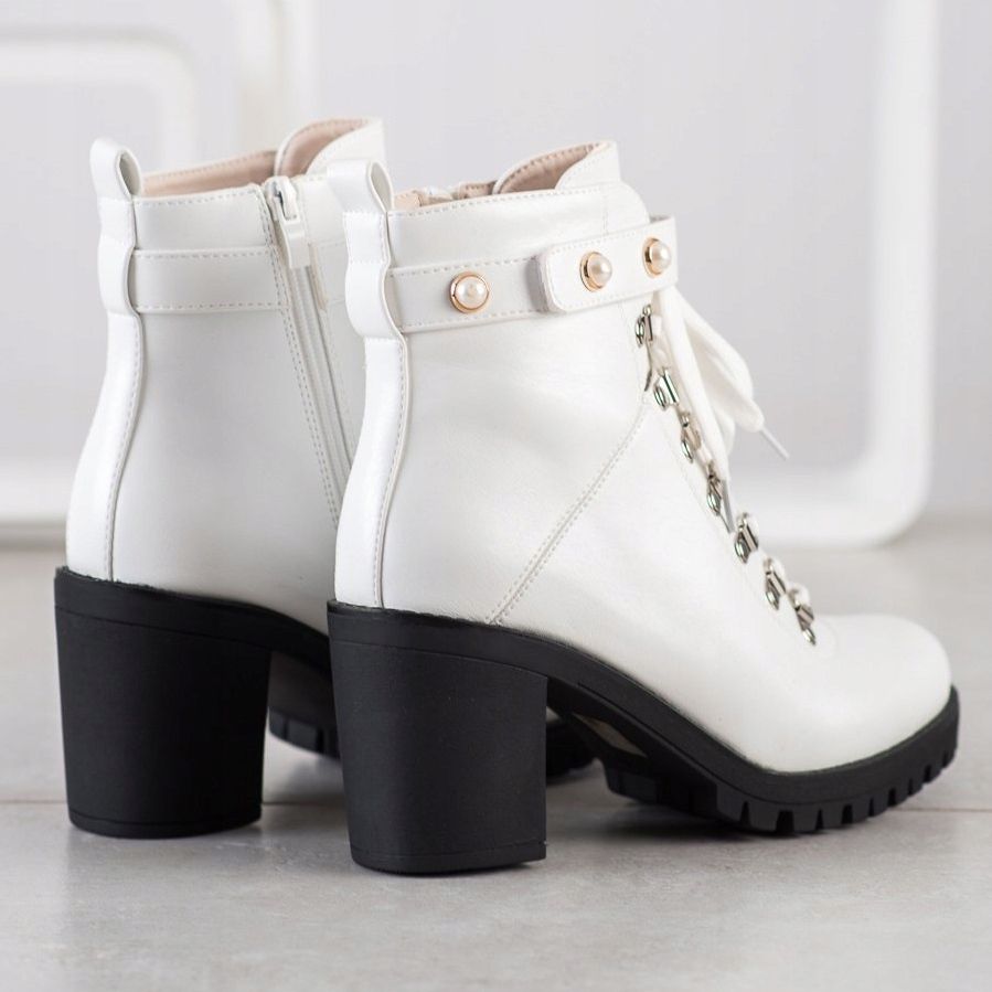 Presentiamo stivaletti da donna unici in stile rock che cattureranno sicuramente l'attenzione di ogni amante della moda. Il modello Ideal Shoes si distingue per una parte superiore realizzata in materiale di alta qualità similpelle, in un elegante colore bianco. Al contrario, una suola con battistrada nera e un tacco massiccio largo 8 centimetri aggiungono carattere e stabilità alle scarpe.