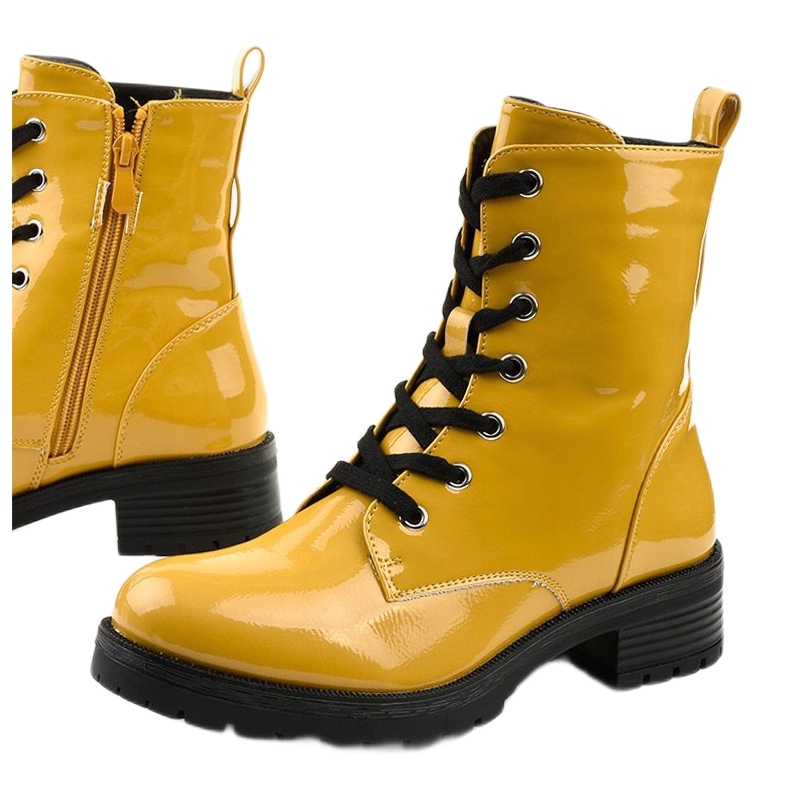 Non aspettare, aggiungi questi esclusivi stivali bovver laccati gialli alla tua collezione, che metteranno sicuramente in risalto il tuo stile personale!