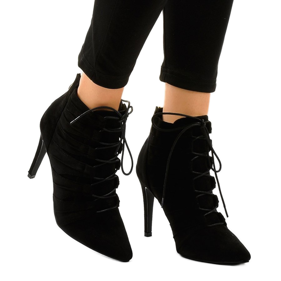 Gli stivaletti neri JA79 in pelle scamosciata con tacco alto sono una scelta perfetta per le donne che vogliono unire l'eleganza con un pizzico di sensualità. Realizzate in pelle scamosciata ecologica, queste scarpe moderne offrono non solo un look unico, ma anche comfort da indossare. Grazie al tacco di 10 centimetri, questi stivali slanciano magnificamente la figura, donandole leggerezza ed eleganza.