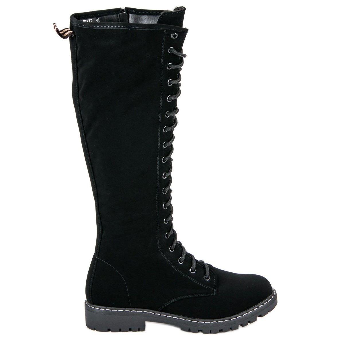 Gli stivali da donna stringati Seastar sono la scelta perfetta per la prossima stagione autunno/inverno. Questi stivali eleganti e casual, realizzati in materiale nero leggermente invecchiato, attirano l'attenzione con il loro design originale e la semplicità dello stile. La tomaia lunga, che arriva fino al ginocchio, combinata con un morbido isolamento li rende non solo eleganti, ma anche comodi e caldi.