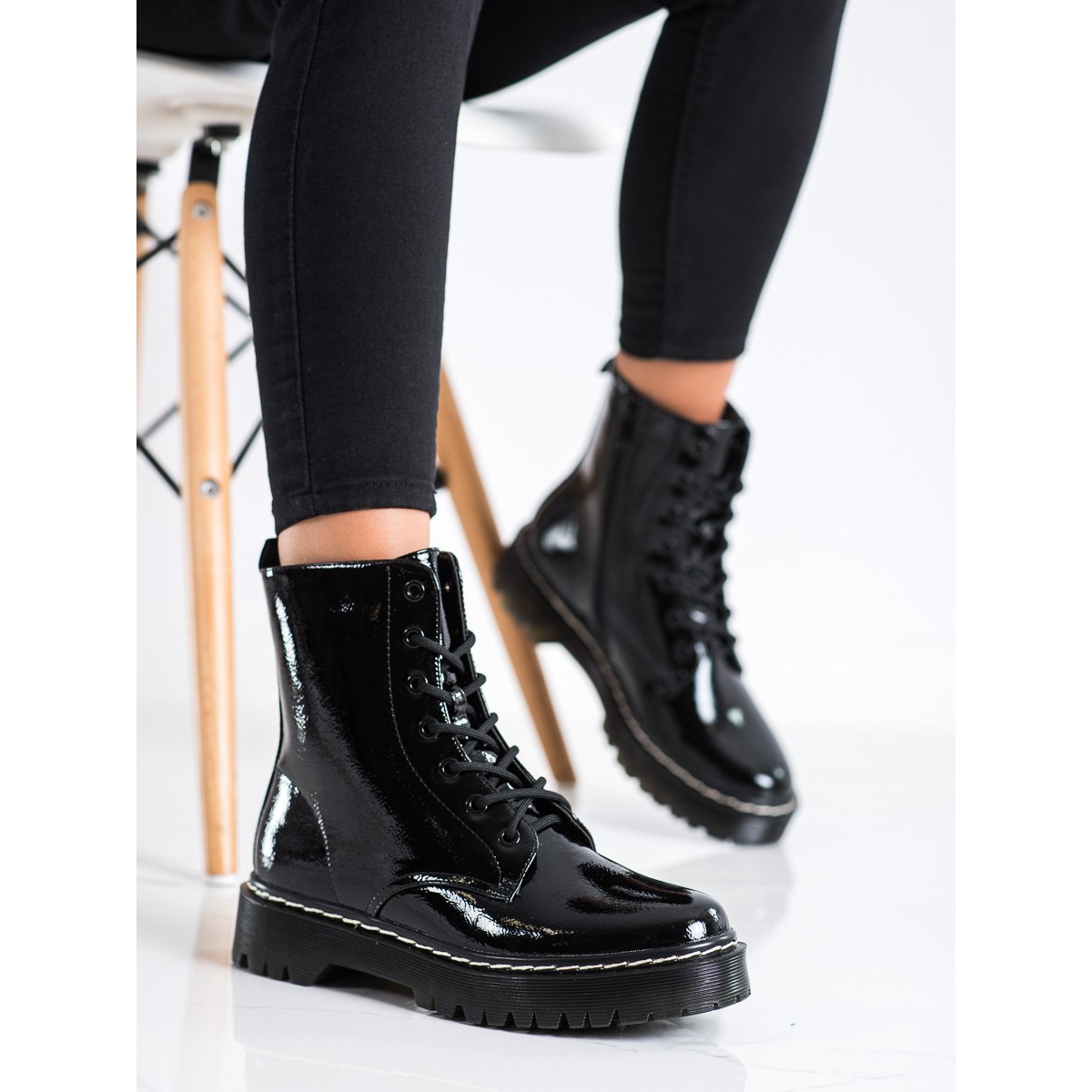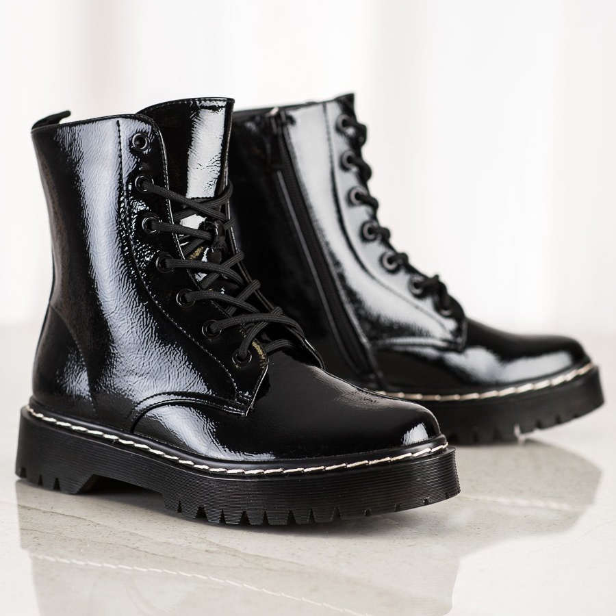 Presentiamo gli stivaletti stringati S. BARSKI su una piattaforma che aggiungerà carattere a qualsiasi stile! Questi eleganti stivali neri sono la scelta perfetta per la stagione autunno/inverno. Realizzati in pregiata pelle ecologica, uniscono un design moderno ad uno stile casual e rock senza tempo.