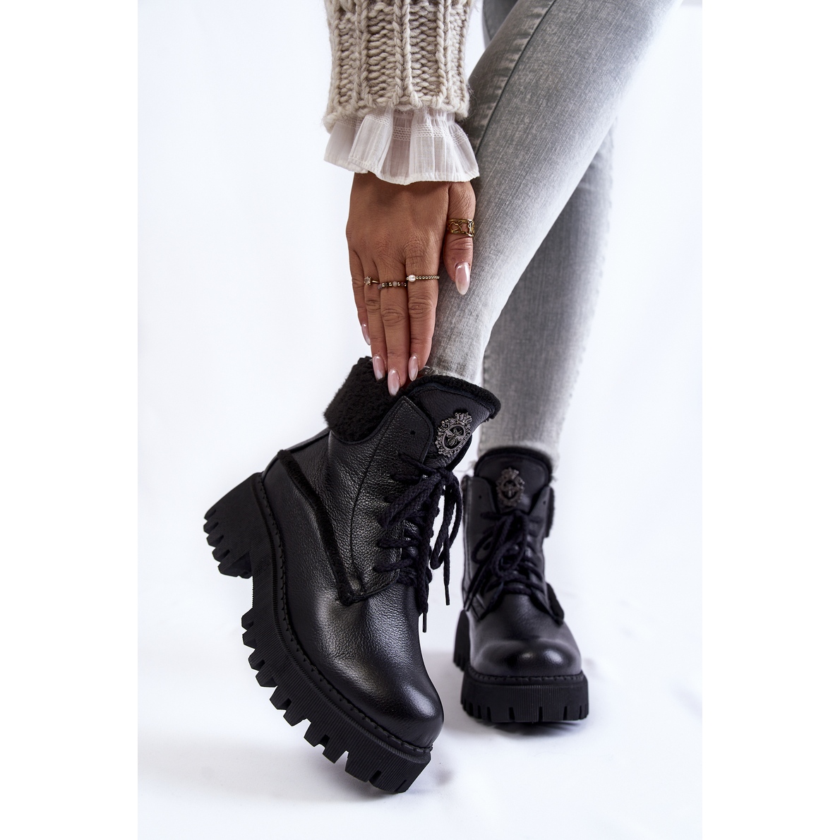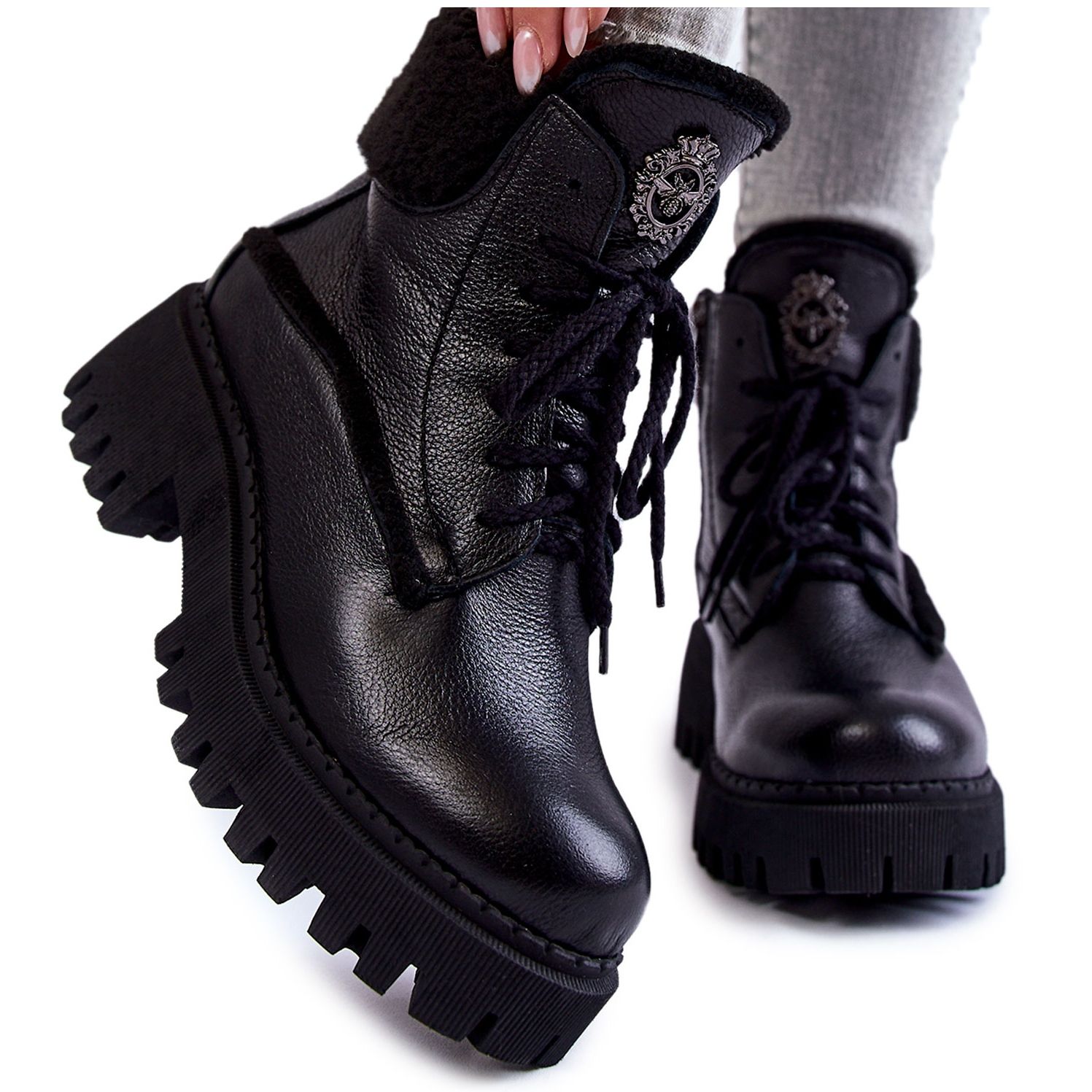 Dettagli: PL5 Stivali Trapper in pelle nera da donna Vergo nero