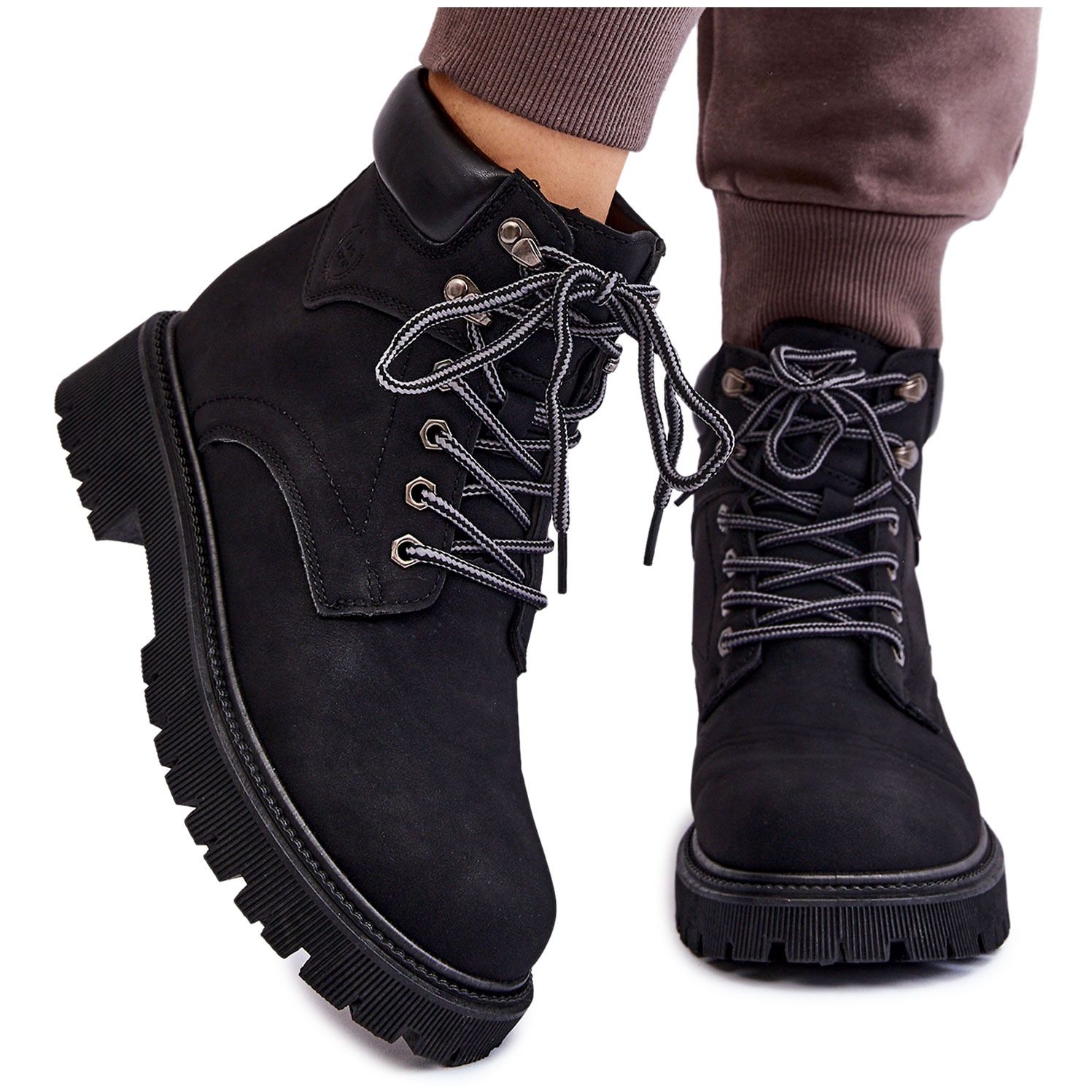 Dettagli: PG1 Stivali Trapper isolati da donna neri con lacci a metà strada nero