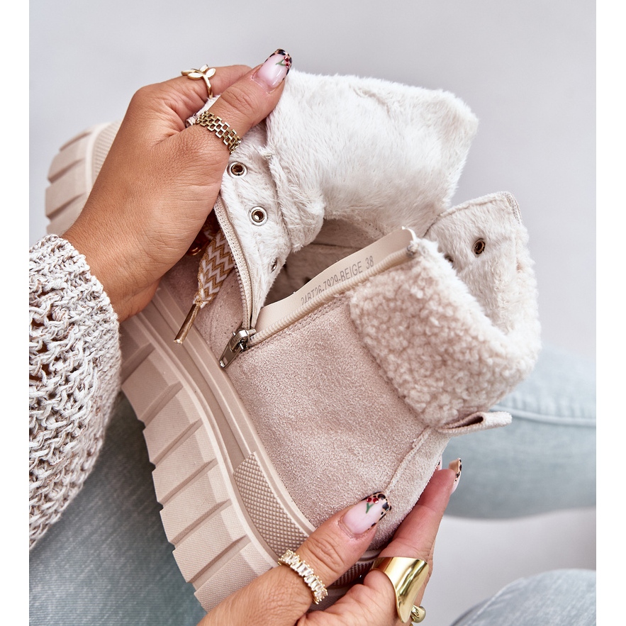 Dettagli: Stivali Trapper isolati da donna sulla piattaforma, Alcyhen beige