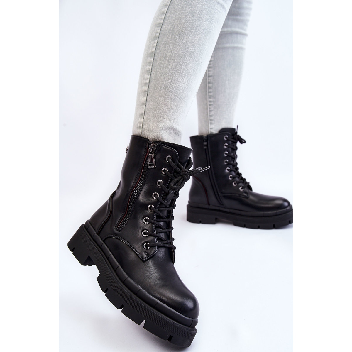 Questi stivali sono caratterizzati da un'allacciatura solida e da una cerniera aggiuntiva sul lato, che facilita l'inserimento e la rimozione. La cerniera esterna decorativa conferisce loro un carattere unico, integrandosi perfettamente sia con gli stili quotidiani che con quelli più eleganti. Il tallone irrigidito garantisce stabilità e comfort.