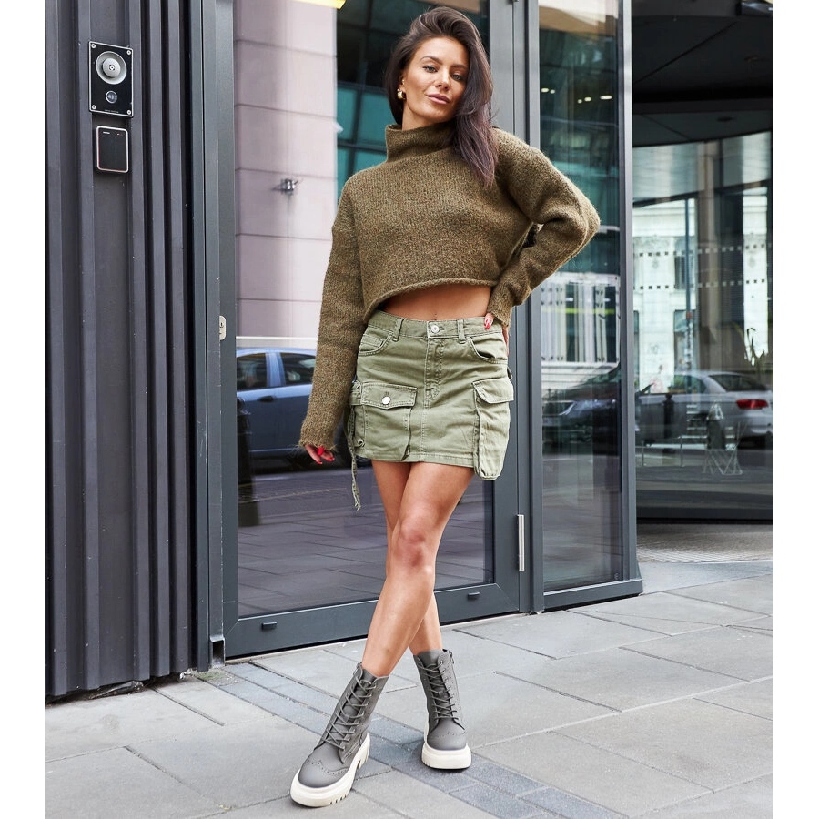 Stivali verdi decorati con le cuciture Nicla (modello JJ12P) - scarpe moderne, comode ed eleganti per le donne che cercano un look in città con un pizzico di gravità. Realizzati in pelle ecologica di alta qualità, in un'intensa tonalità di verde, si distinguono per le cuciture decorative e una punta rotonda che enfatizza il loro carattere. Il castello semplifica l'utilizzo e la lacciatura ti consente di abbinare la scarpa al piede, perfetta per le stilizzazioni quotidiane nella stagione autunnale.