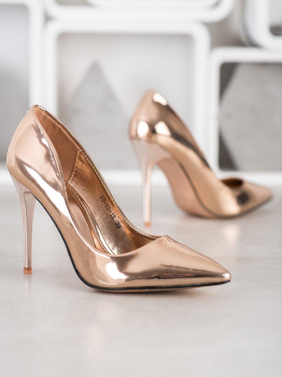 Le décolletini dorate e luccicanti sono una proposta per gli amanti di uno stile espressivo e classico. Un tallone alto e alto 10 cm slimina la figura e la superficie lucida e metallica dà alle scarpe un personaggio unico, perfetto per gite, celebrazioni ed eventi serali.