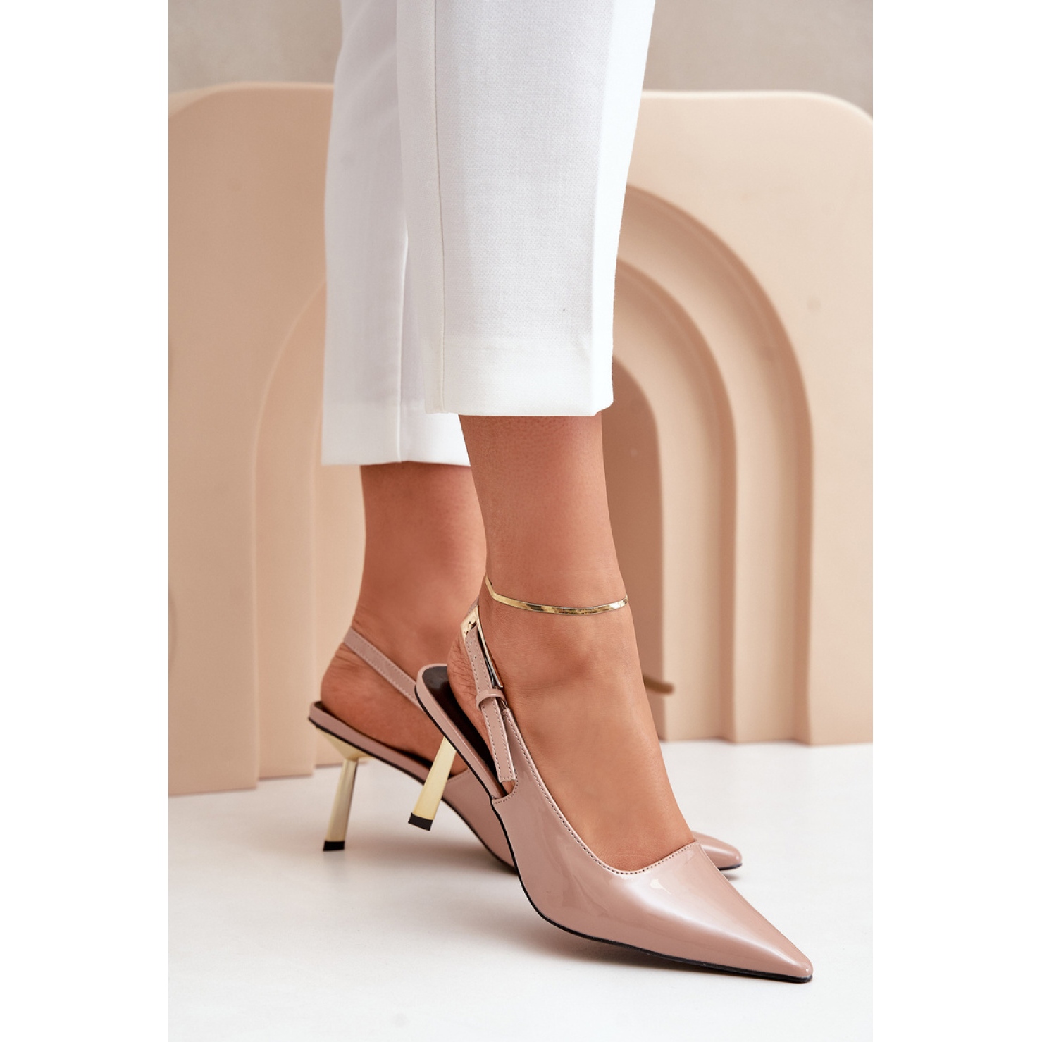 La spilla dorata e decorativa con un'altezza di 8 cm enfatizza il loro carattere esclusivo e i nasi appuntiti danno loro un'eleganza eccezionale. Grazie alla cintura regolabile con la fibbia, i tacchi alti si adattano perfettamente al piede, fornendo non solo un look alla moda, ma anche comfort nell'usura.