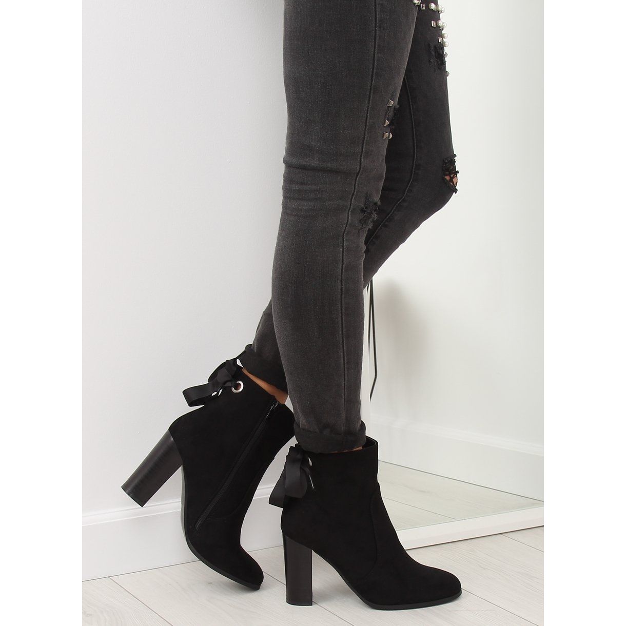 Scopri l'eleganza e la comodità con gli stivaletti neri con tacco alto 1331 Black. Questi eleganti stivali da donna si distinguono per un taglio slim che mette perfettamente in risalto la figura. L'allacciatura decorativa sul retro della tomaia conferisce loro un carattere unico, e il tacco dritto - un blocco alto 9 cm - unisce un look alla moda a una stabilità straordinaria.