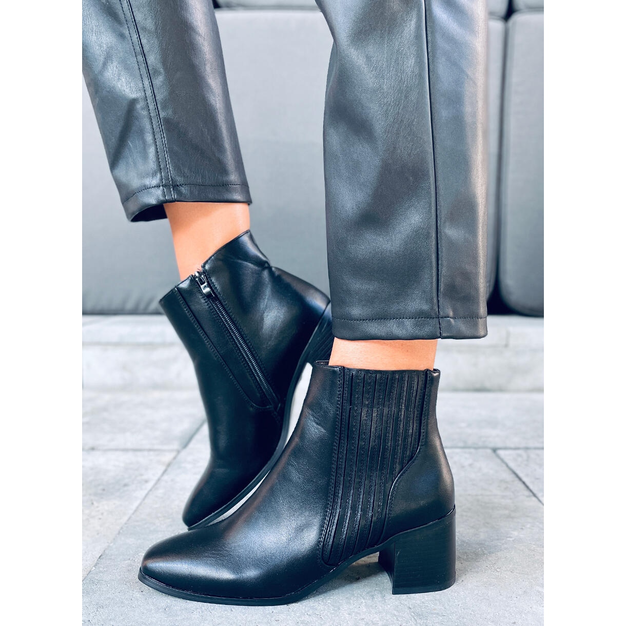 Gli stivaletti Tama Black con tacco alto sono la scelta perfetta per le donne che apprezzano la combinazione di stile classico e moderno. Realizzati in pelle ecologica di alta qualità, questi stivaletti pieno fiore sono caratterizzati da un elegante colore nero e dalla punta squadrata, che conferisce loro un carattere unico. Un ampio tacco alto 6 cm garantisce stabilità e comfort durante le attività quotidiane, mentre l'inserto in gomma che ricorda gli stivaletti Chelsea aggiunge un accento alla moda.