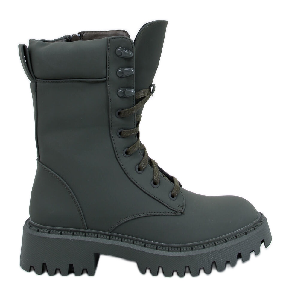 Tamas Green Laced Laced - Stivali da donna verde che combinano un personaggio militare con il conforto femminile. Matt, la pelle ecologica a grana offre loro un aspetto resistente ed elegante e la suola del protettore fornisce un certo passo in città e all'esterno. Isolato con pelliccia delicata, perfetta per giorni più freddi - pratico ed elegante per tutta la stagione.