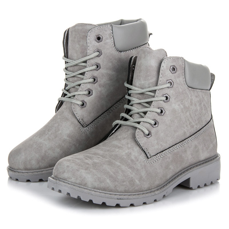 Realizzati con materiali di alta qualità, i trapper sono caratterizzati da una suola sintetica che garantisce buona presa e durata. L'interno delle scarpe rifinito in tessuto le rende piacevoli da indossare, e il classico colore grigio le rende facili da abbinare a vari stili.