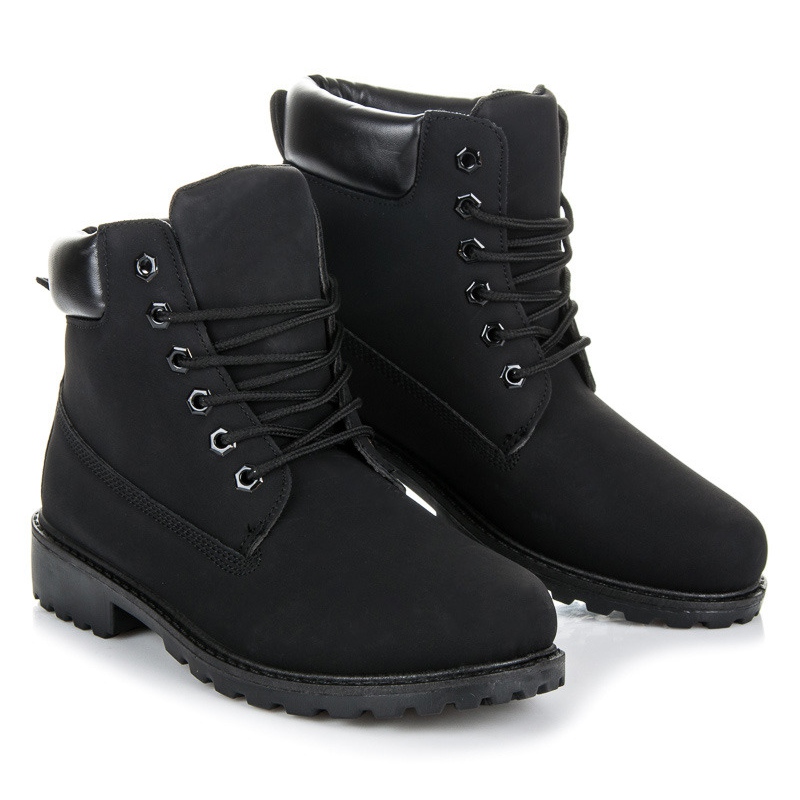 Gli stivali hanno una chiusura con lacci e una tomaia che arriva sopra le caviglie, che fornisce ulteriore stabilità e comfort. L'altezza del tacco di 3 cm e il tacco piatto li rendono non solo comodi, ma anche perfetti per essere indossati a lungo. La loro suola è in plastica con battistrada, che garantisce trazione e sicurezza su superfici scivolose.