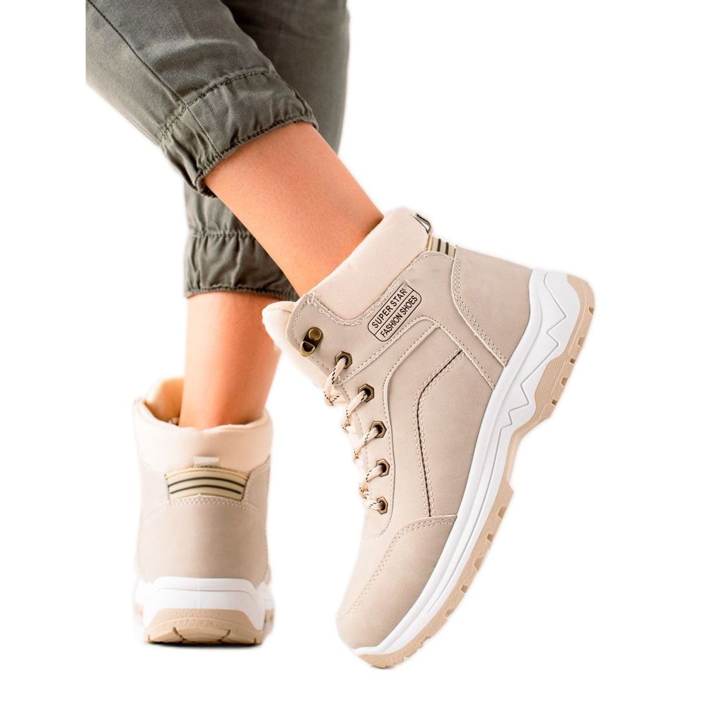 Il colore beige rende questi stivali facili da abbinare a vari stili, dal casual allo sportivo. La chiusura con lacci consente una vestibilità perfetta e l'inserto in tessuto aggiunge morbidezza e comfort. Le sneakers TRENDI sono un must in ogni collezione di calzature da donna, che renderanno ogni passo leggero e piacevole. Dai un'occhiata oggi e goditi la combinazione di stile, comfort e funzionalità!