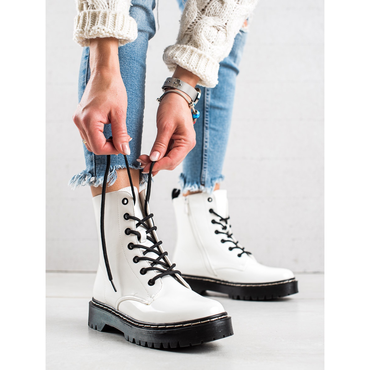 Trapper femminili di Vinceza moderni e pratici, ideali per la stagione autunno/inverno. La combinazione di un glande classico tagliato con una finitura alla moda e verniciata in un elegante colore bianco e una suola nera contrastante.